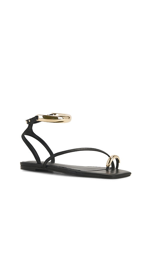 Leather upper with manmade sole. Made in China. Ankle push-pin closure with gold-tone hardware. Faux leather footbed and lining. Gold-tone metal hardware at toe loop. Slanted square toe. SMAD-WZ1464. ODYS01S1017. The effortless west coast vibe of BB Dakota has now merged with the iconic Downtown edge of Steve Madden. Introducing Steve Madden Apparel... Inspired by confident women and its youthful New York City roots, Steve Madden apparel offers bold and disruptive, yet timeless essentials. Always at the forefront of trends and reinventing style season after season, Steve Madden apparel provides you with the tools you need to become your own fashion visionary. It's about authenticity. It's about embracing individuality. It's Steve Madden. Color: Black Leather. Shop Black Leather Flat Sandals for women and the latest Steve Madden shoes now.
