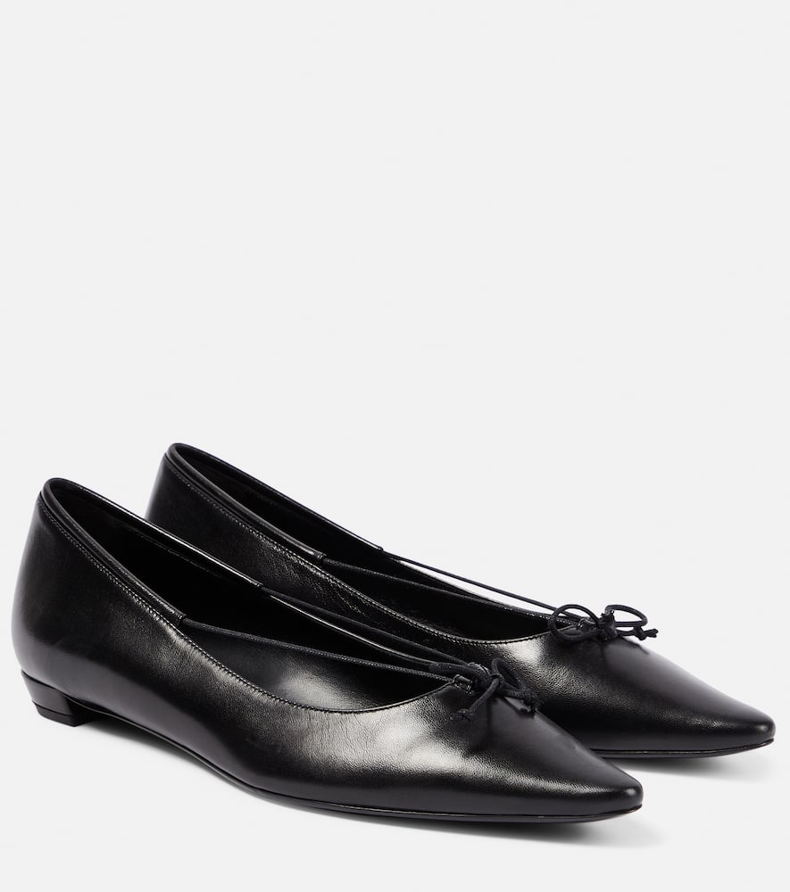 Sole: leather insole, rubber sole. Toe shape: pointed toe. Upper: leather. Comes with a box. Designer color name: Black. Made in Italy. Comes with dust bag. Shop the latest The Row Ballet Flats for women now.