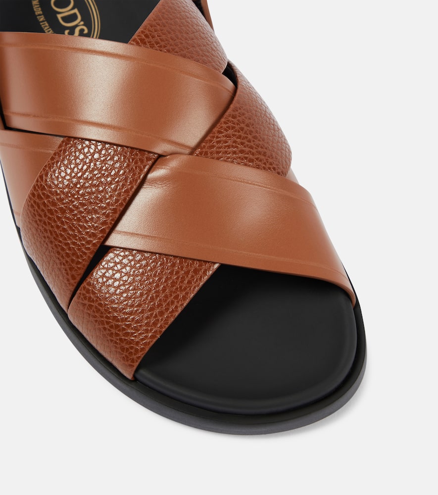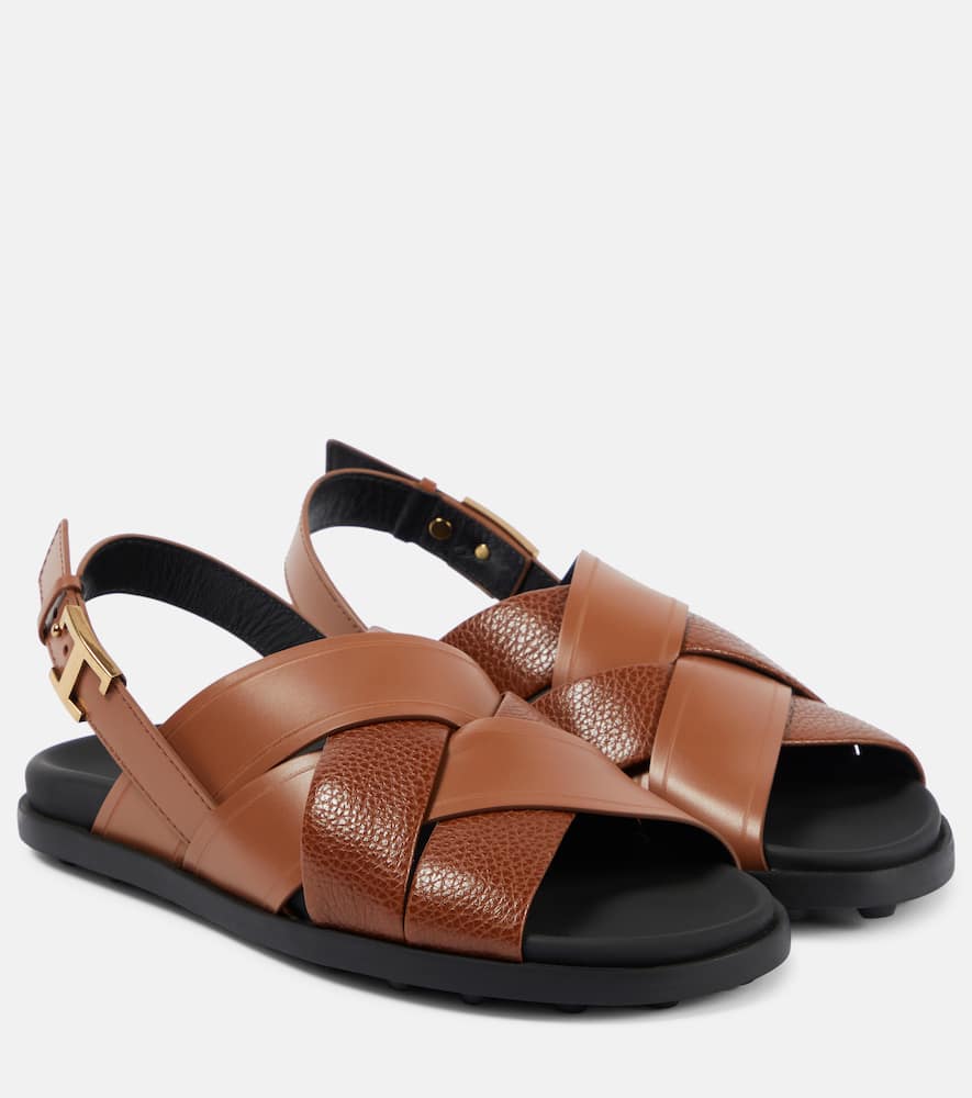 Upper: leather. Lining: leather. Sole: rubber insole and sole. Toe shape: round open toe. Made in Italy. Includes: dust bag, shoe box. Designer color name: Brandy Sc. Closure: buckle fastening. Shop the latest Tod's Flat Sandals for women now.