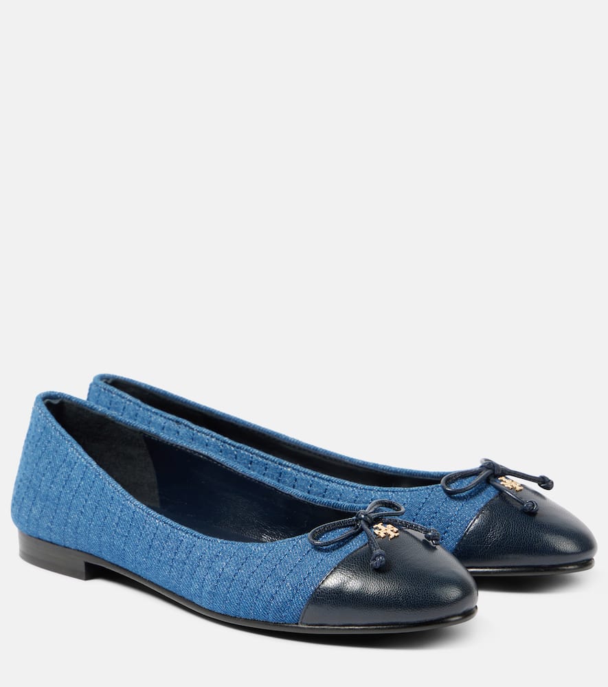 Tory Burch Embellished leather-trimmed ballet flats