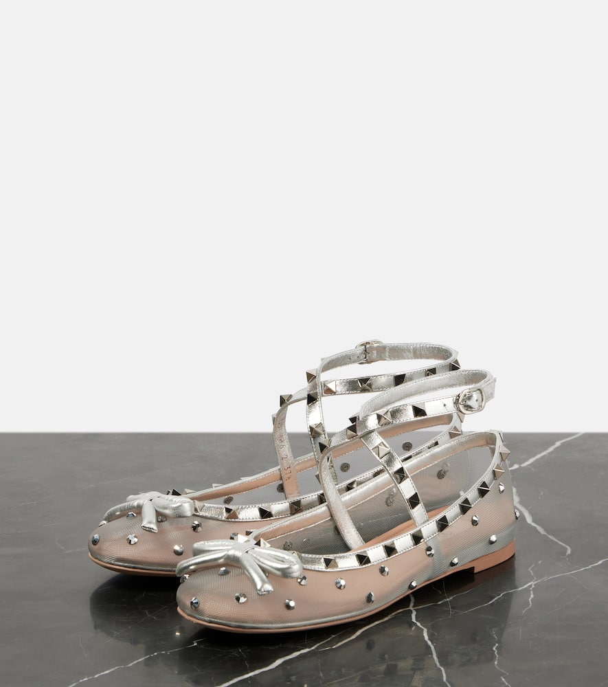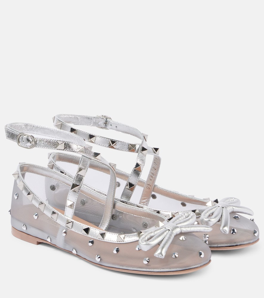 Valentino Garavani Rockstud bow-detail mesh ballet flats