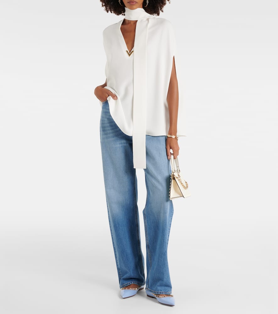 Upper: leather. Lining: leather. Sole: leather insole and sole. Toe shape: pointed toe. Made in Italy. Includes: dust bags, shoe box. Designer color name: Popeline Blue/Poudre. Hardware color: gold. Shop the latest Valentino Garavani Ballet Flats for women now.