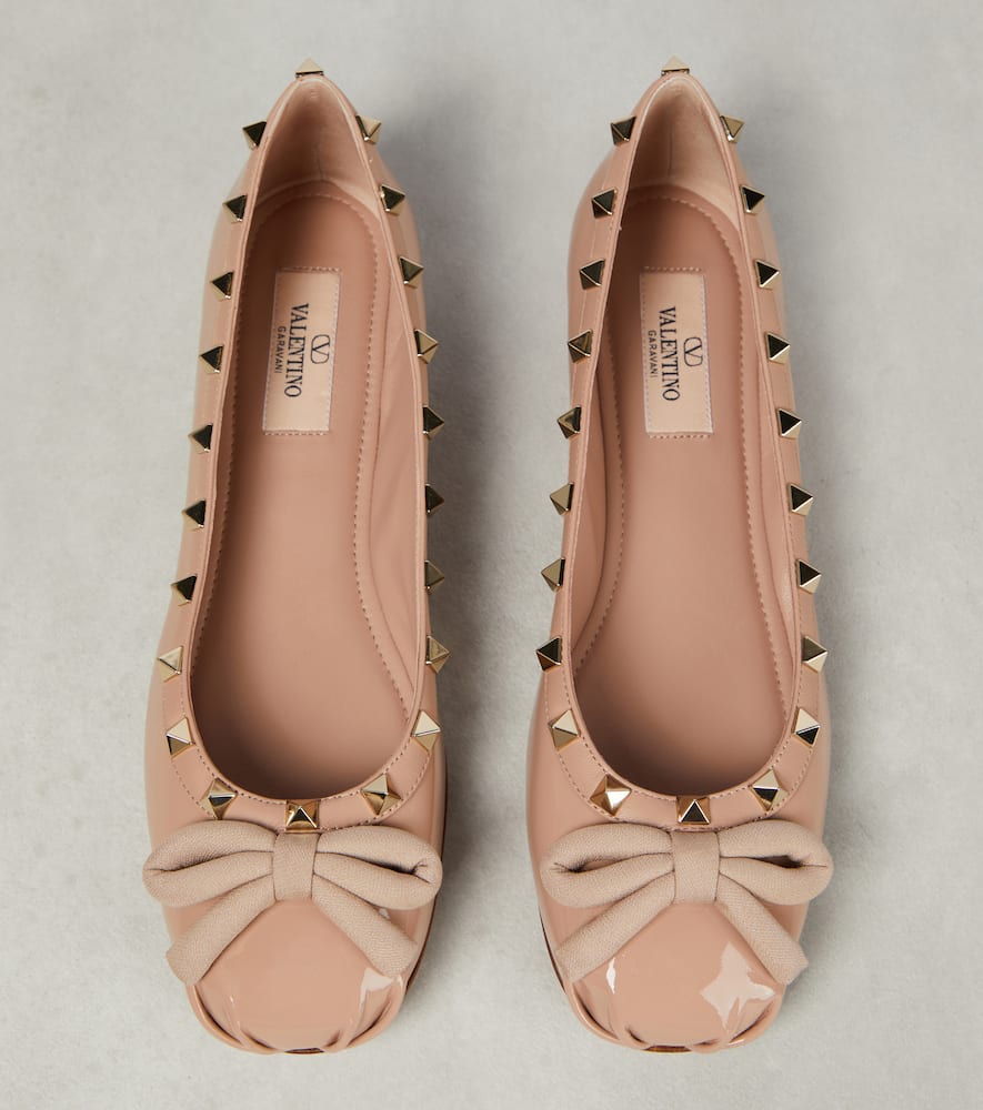 Upper: leather. Lining: leather. Sole: leather insole and sole. Toe shape: round toe. Made in Italy. Includes: dust bags, shoe box. Designer color name: Rose Cannelle. Hardware color: gold. Shop the latest Valentino Garavani Ballet Flats for women now.