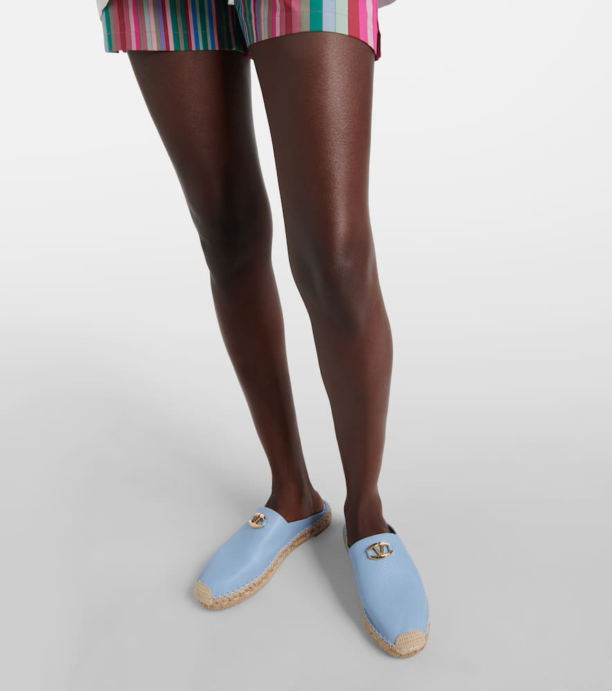 Upper: leather. Lining: leather. Sole: leather insole, rubber sole. Toe shape: round toe. Made in Italy. Includes: shoe box, dust bags. Designer color name: Popeline Blue. Hardware color: gold. Shop the latest Valentino Garavani Flat Espadrilles for women now.