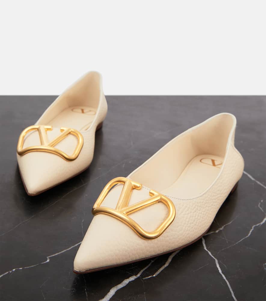 Upper: calf leather. Lining: leather. Sole: leather insole and sole. Toe shape: pointed toe. Made in Italy. Includes: shoe box, dust bag. Designer color name: Light Ivory. Hardware color: gold. Shop the latest Valentino Garavani Ballet Flats for women now.