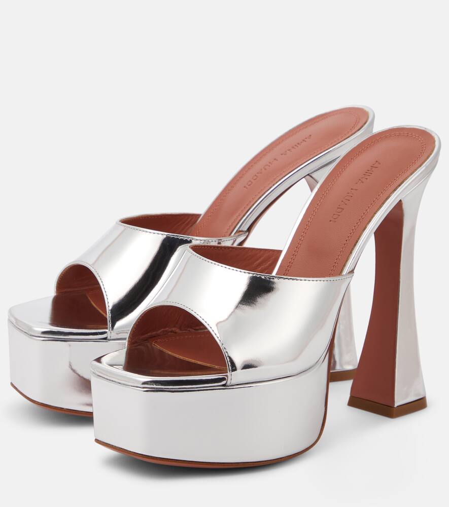 Upper: leather. Lining: leather. Sole: leather insole, leather and rubber sole. Toe shape: square open toe. Made in Italy. Includes: shoe box, dust bag. Designer color name: Silver. Shop the latest Amina Muaddi High-Heel Sandals for women now.