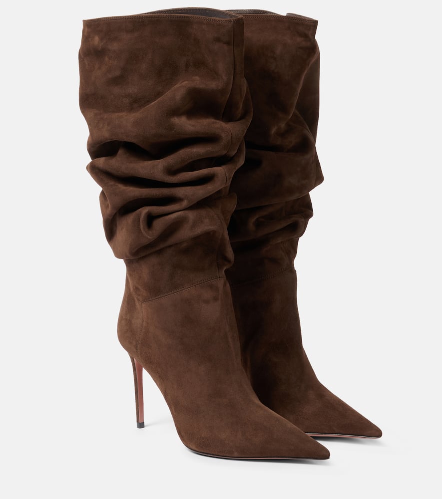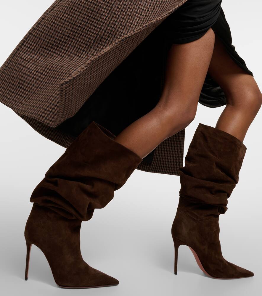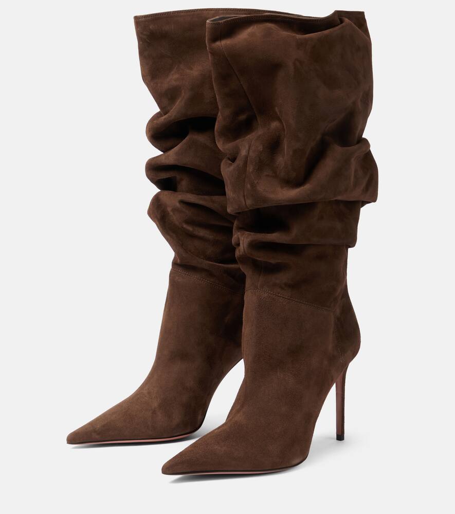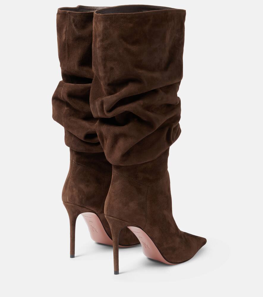 Upper: leather. Lining: leather. Sole: leather insole, rubber sole. Toe shape: pointed toe. Made in Italy. Includes: extra heel tips, dust bag, shoe box. Designer color name: Coffee. Shop the latest Amina Muaddi High-Heel Boots for women now.