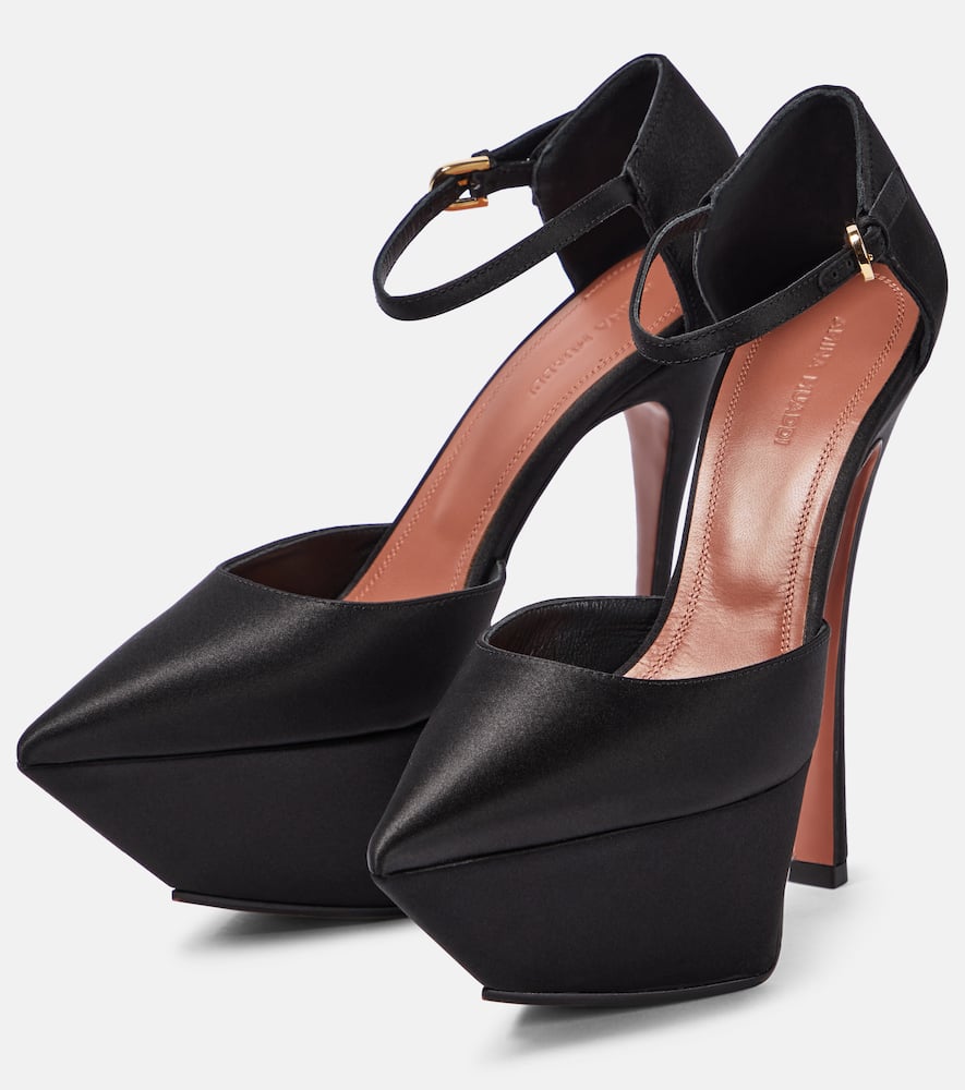 Upper: fabric. Comes with extra heel tips, Comes with a box, Comes with dust bag. Sole: leather insole, leather and rubber sole. Toe shape: pointed toe. Designer color name: Black. Closure: buckle-fastening ankle strap. Made in Italy. Shop the latest Amina Muaddi High-Heel Pumps for women now.