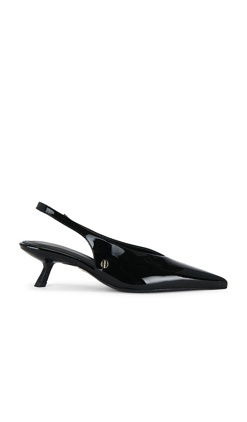 Patent leather upper with leather sole. Sling-back styling. Leather footbed and lining. Pointed toe with slanted heel. Approx 50mm/ 2 inch heel. ANIN-WZ157. A-14-11313-BLK1. Inspired by Scandinavian simplicity and vintage Americana, Los Angeles based fashion house Anine Bing has created a global brand for the modern woman seeking a timeless yet rebellious approach to style. From luxurious staples to wardrobe basics, Anine Bing provides the highest quality fabrications and materials in each collection that effortlessly fuse together edgy feminine designs. Color: Black. Shop Black Pump Heels for women and the latest ANINE BING shoes now.