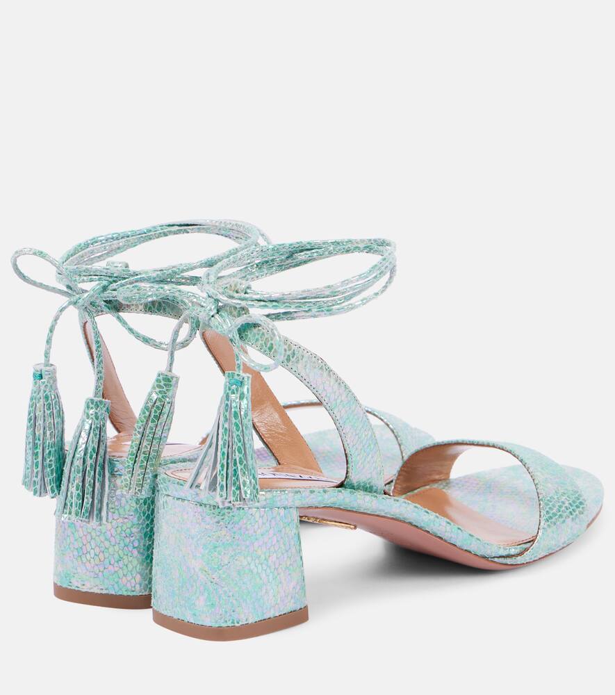 Upper: leather. Lining: leather. Sole: leather insole and sole. Toe shape: round open toe. Made in Italy. Includes: shoe box, dust bag. Designer color name: Sparemint. Closure: ankle strap. Shop the latest Aquazzura Mid-Heel Sandals for women now.