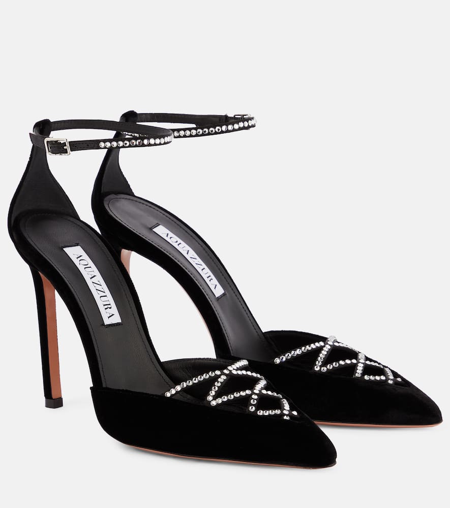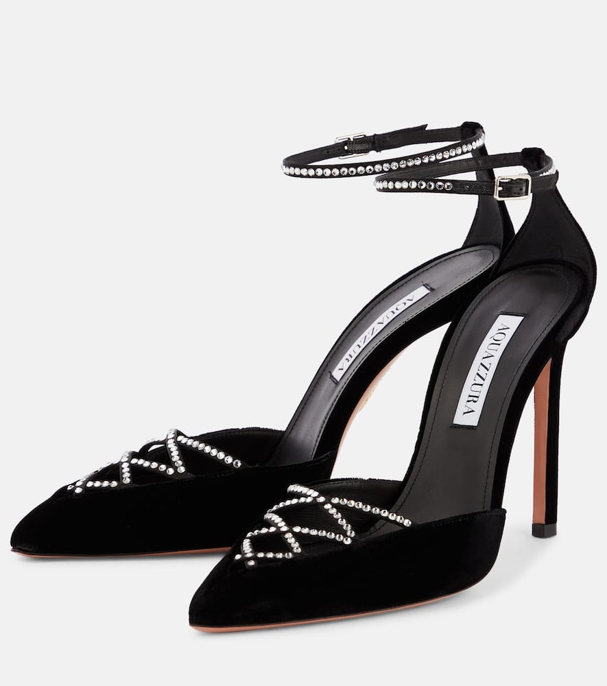 Upper: fabric. Lining: leather. Sole: leather insole and sole. Toe shape: pointed toe. Made in Italy. Designer color name: Black. Closure: buckle-fastening ankle strap. Comes with a box. Comes with dust bag. Shop the latest Aquazzura High-Heel Pumps for women now.
