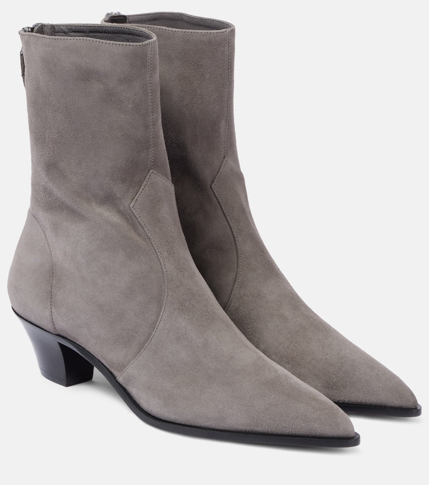 Upper: leather. Lining: leather. Sole: leather insole and sole. Toe shape: pointed toe. Made in Italy. Includes: shoe box, dust bag. Designer color name: Paris Grey. Closure: zipped back. Shop the latest Aquazzura Mid Heels for women now.