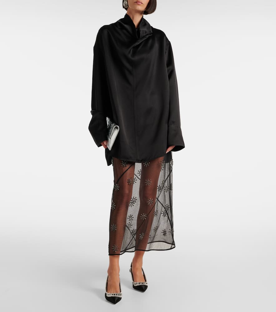 Upper: satin. Lining: leather. Sole: leather insole and sole. Toe shape: pointed toe. Made in Italy. Includes: shoe box. Designer color name: Black. Shop the latest Aquazzura Mid-Heel Pumps for women now.