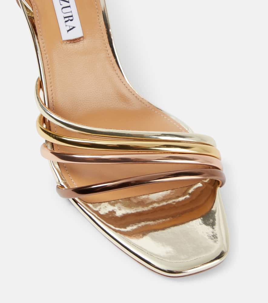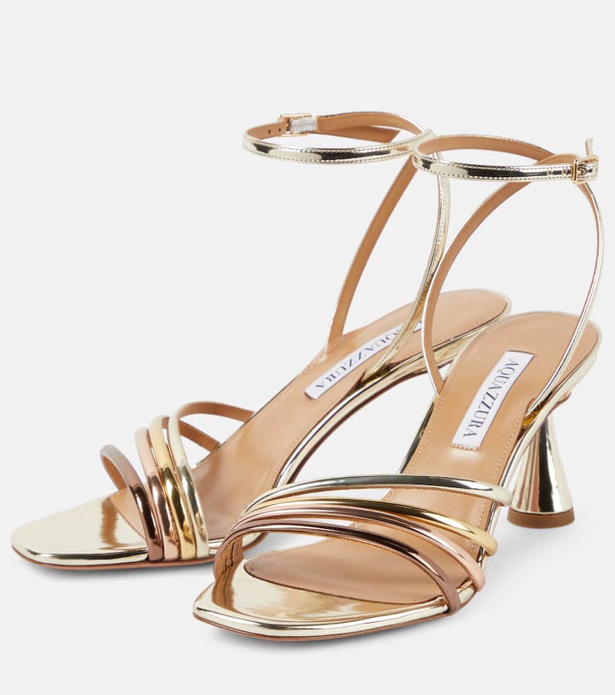 Upper: leather. Lining: leather. Sole: leather insole and sole. Toe shape: square open toe. Made in Italy. Includes: shoe box, dust bag. Designer color name: Multimetal. Closure: buckle-fastening ankle strap. Shop the latest Aquazzura Mid-Heel Sandals for women now.
