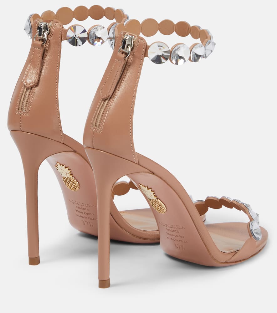 Toe shape: round open toe. Comes with dust bag. Upper: lamb leather. Sole: leather insole and sole. Designer color name: Powder Pink. Closure: zipped back. Comes with a box. Made in Italy. Shop the latest Aquazzura High-Heel Sandals for women now.