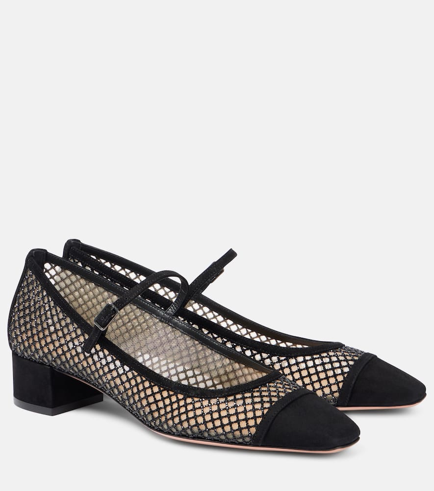 Upper: fabric, leather. Lining: leather. Sole: leather insole and sole. Toe shape: square toe. Made in Italy. Includes: shoe box, dust bag. Designer color name: Black. Closure: buckle fastening. Shop the latest Aquazzura Mid-Heel Pumps for women now.
