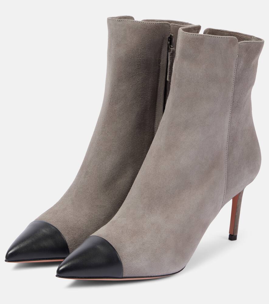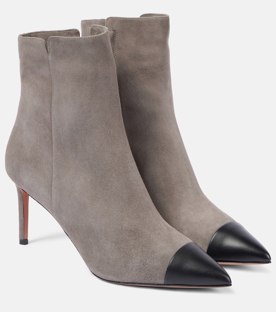 Upper: leather. Lining: leather. Sole: leather insole and sole. Toe shape: pointed toe. Made in Italy. Includes: shoe box, dust bag. Designer color name: Paris Grey/Black. Closure: zipped side. Shop the latest Aquazzura Mid Heels for women now.