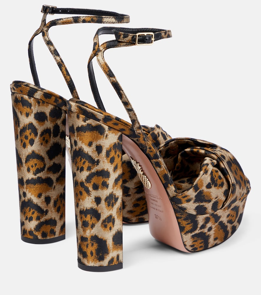 Toe shape: round open toe. Upper: fabric. Sole: fabric insole, leather sole. Closure: buckle-fastening ankle strap. Designer color name: Caramel. Comes with a box. Made in Italy. Comes with dust bag. Shop the latest Aquazzura High-Heel Sandals for women now.