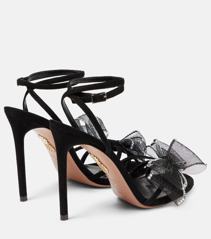 Upper: goat leather. Lining: leather. Sole: leather insole and sole. Toe shape: round open toe. Made in Italy. Designer color name: Black. Trim: fabric. Closure: buckle-fastening ankle strap. Comes with a box. Comes with dust bag. Shop the latest Aquazzura High-Heel Sandals for women now.