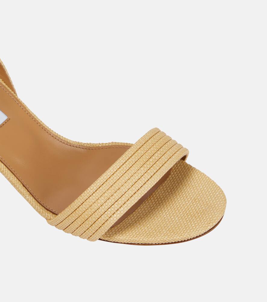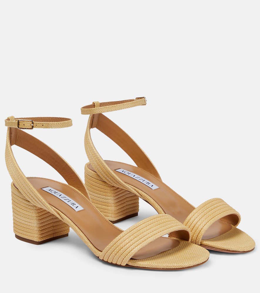 Toe shape: round open toe. Lining: leather. Comes with dust bag. Sole: leather insole and sole. Comes with a box. Designer color name: Natural. Upper: faux leather. Closure: buckle-fastening ankle strap. Made in Italy. Shop the latest Aquazzura Mid-Heel Sandals for women now.