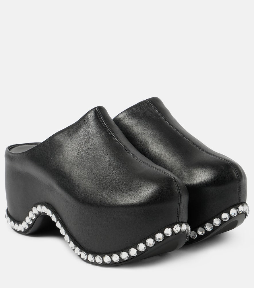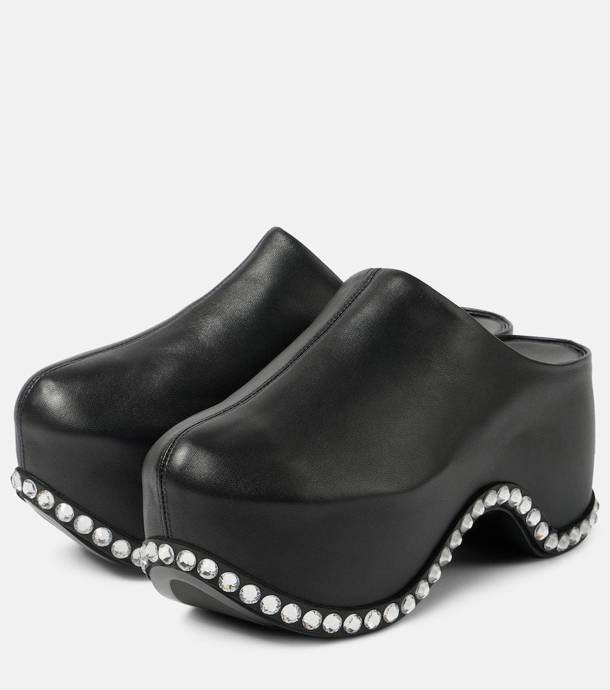 Upper: calf leather. Lining: leather. Sole: leather insole and sole. Toe shape: round toe. Made in Italy. Includes: shoe box, dust bags. Designer color name: Nero/Crystal. Shop the latest Area Mid-Heel Pumps for women now.