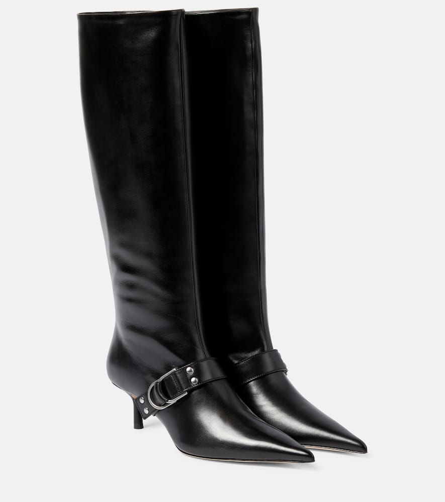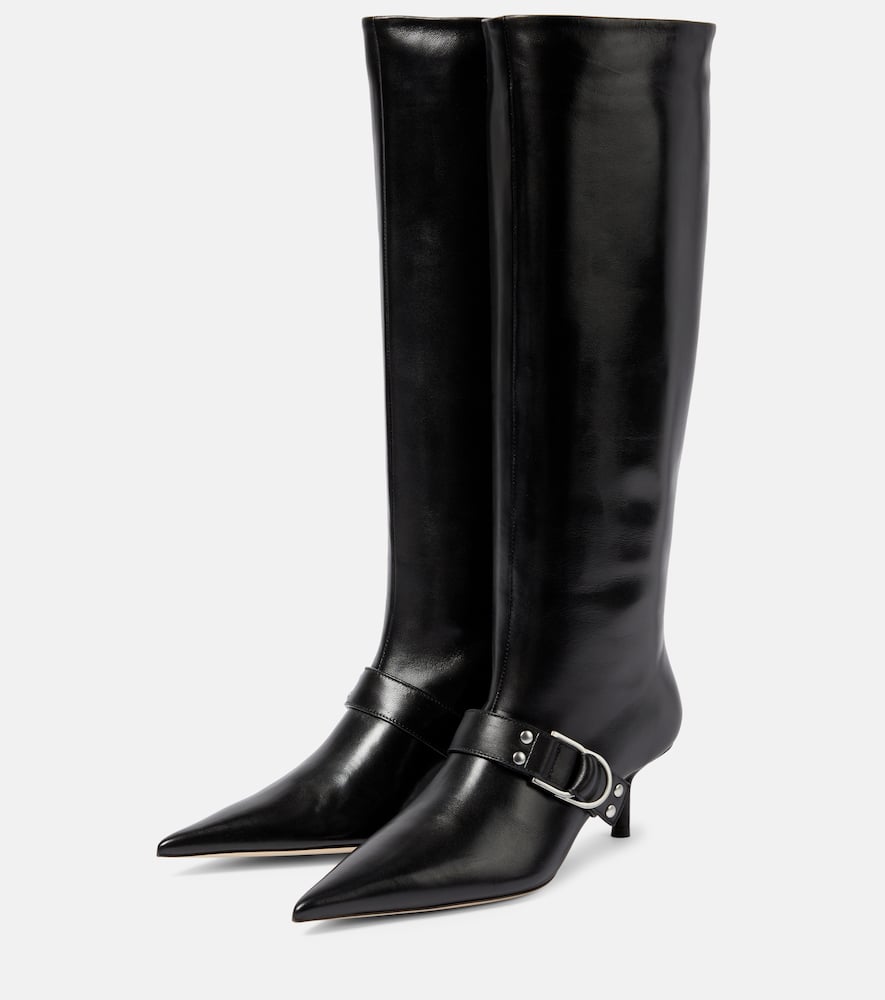 Upper: leather. Lining: leather. Sole: leather insole and sole. Toe shape: pointed toe. Made in Italy. Includes: shoe box. Designer color name: Black. Comes with dust bag. Shop the latest Blumarine Mid-Heel Boots for women now.