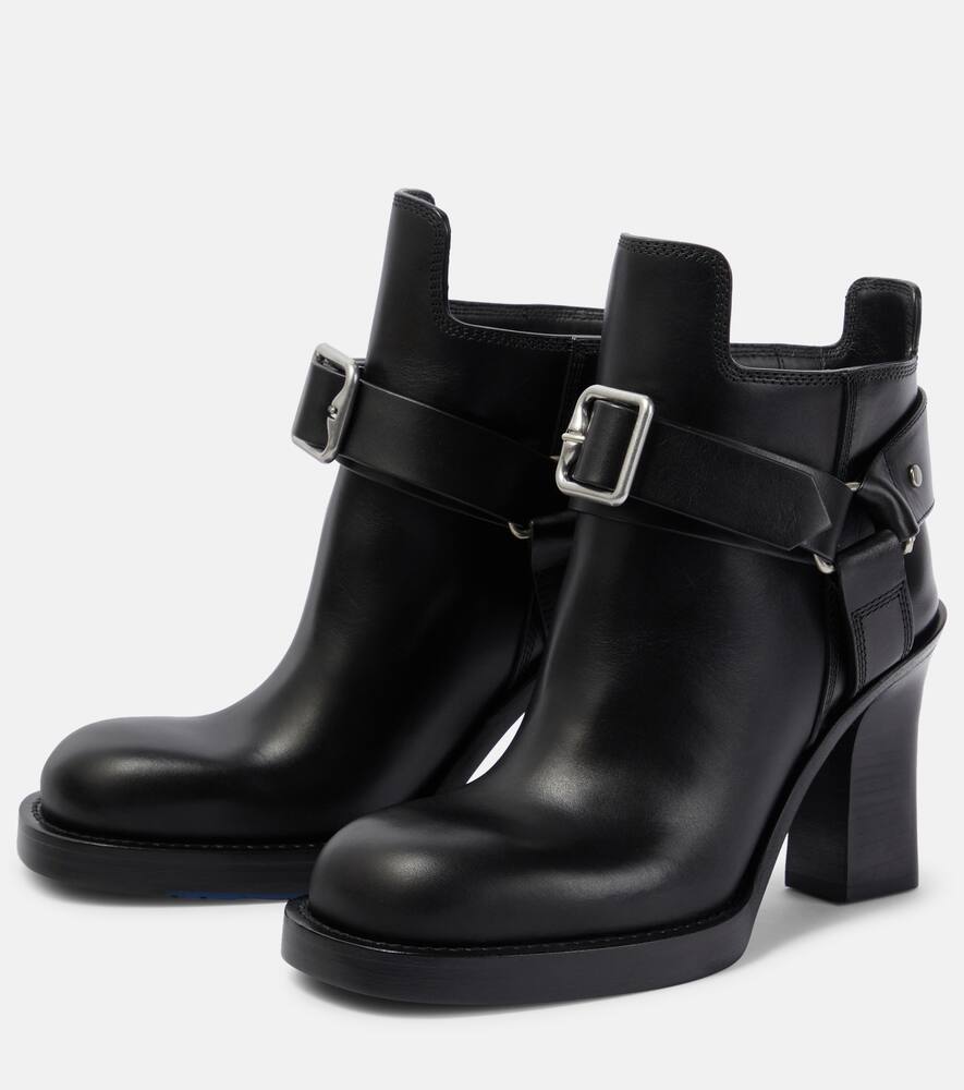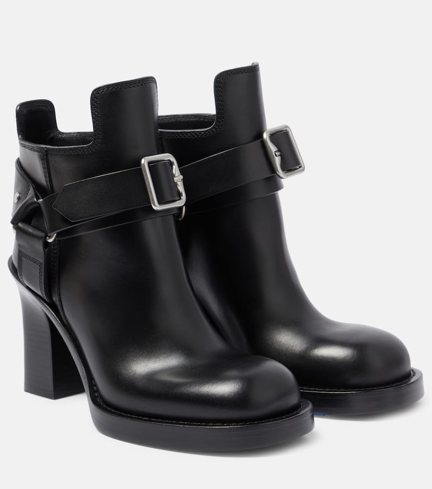 Upper: calf leather. Lining: leather. Sole: leather insole and sole. Toe shape: square toe. Made in Italy. Includes: dust bags, shoe box. Designer color name: Black. Shop the latest Burberry High Heels for women now.