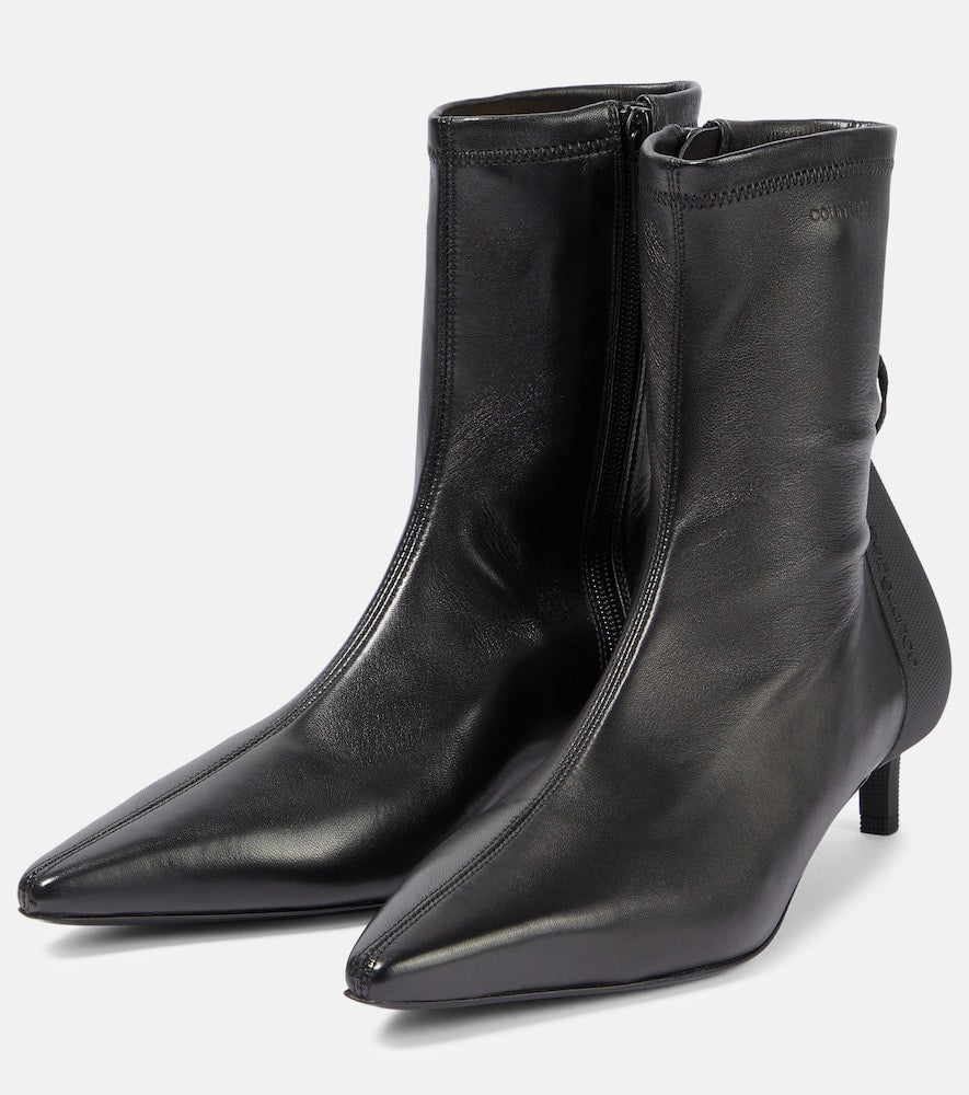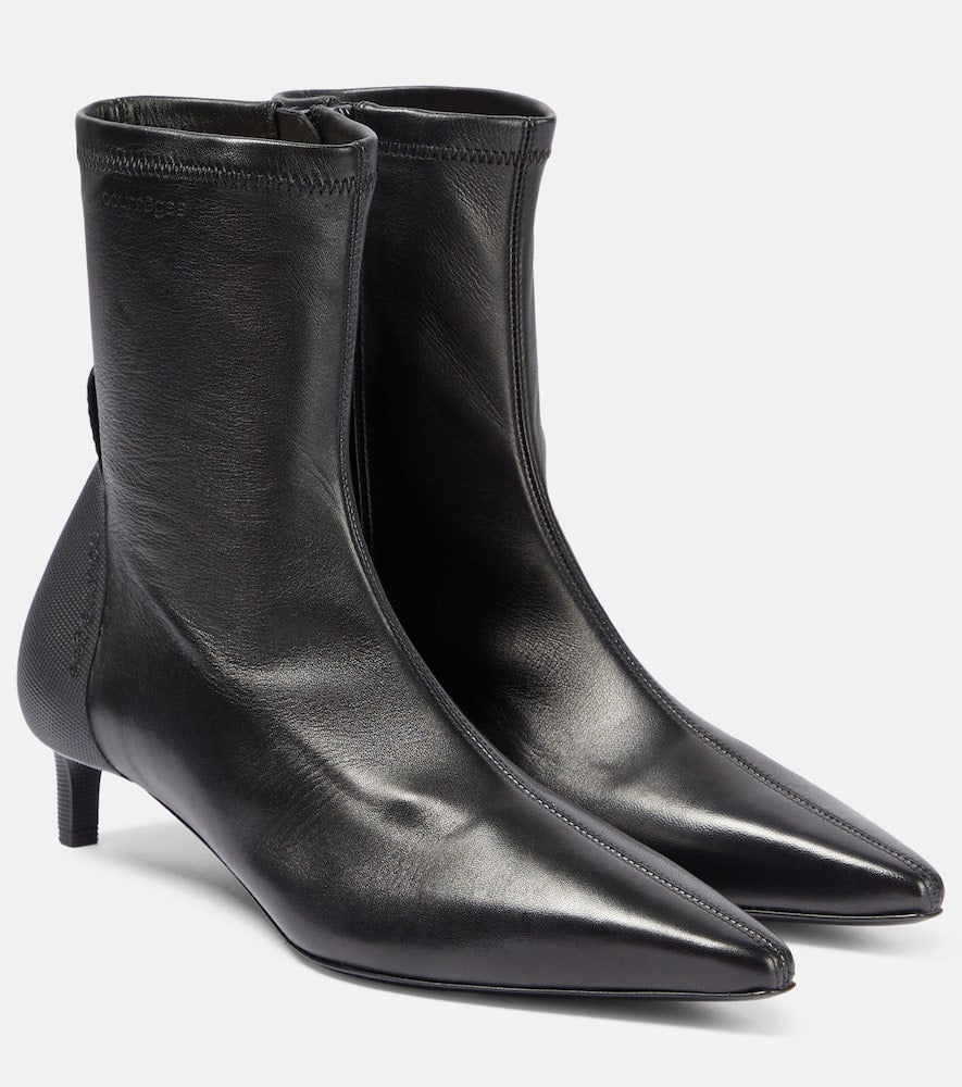 Upper: leather. Lining: leather. Sole: leather insole, leather and rubber sole. Toe shape: pointed toe. Made in Italy. Designer color name: Black. Closure: zipped side. Comes with a box. Comes with dust bag. Shop the latest Courreges Mid Heels for women now.