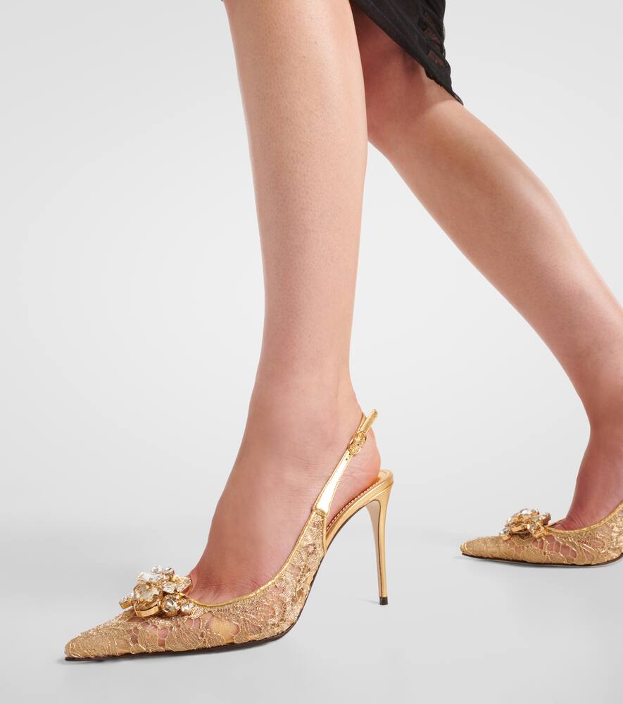 Upper: fabric. Lining: fabric. Sole: leather insole and sole. Toe shape: pointed toe. Made in Italy. Includes: dust bag, presentation box. Designer color name: Oro. Shop the latest Dolce&Gabbana High-Heel Pumps for women now.