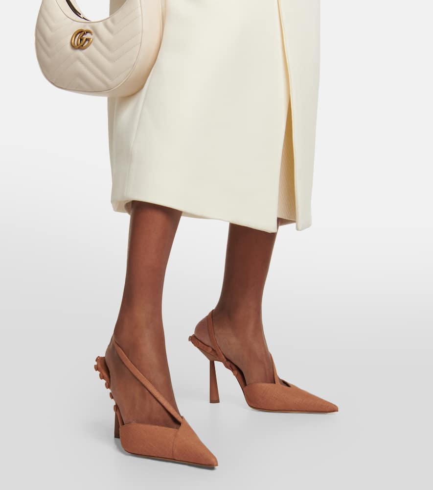 Lining: leather. Upper: fabric. Sole: leather insole and sole. Toe shape: pointed toe. Comes with a box. Designer color name: Caramel. Made in Italy. Comes with dust bag. Shop the latest Gia Borghini High-Heel Pumps for women now.