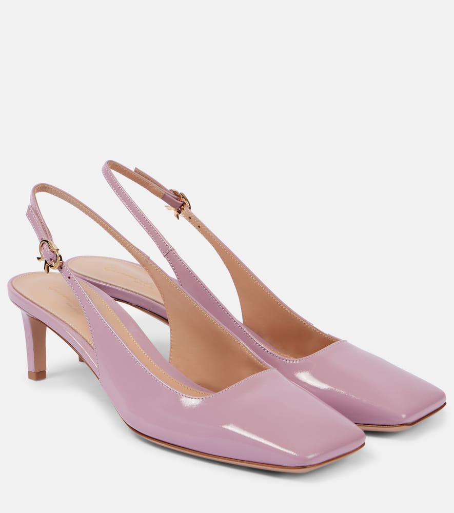 Upper: leather. Lining: leather. Sole: leather insole and sole. Toe shape: square toe. Made in France. Includes: shoe box, dust bags. Designer color name: Sugar. Closure: buckle fastening. Hardware color: gold. Shop the latest Gianvito Rossi Mid-Heel Pumps for women now.