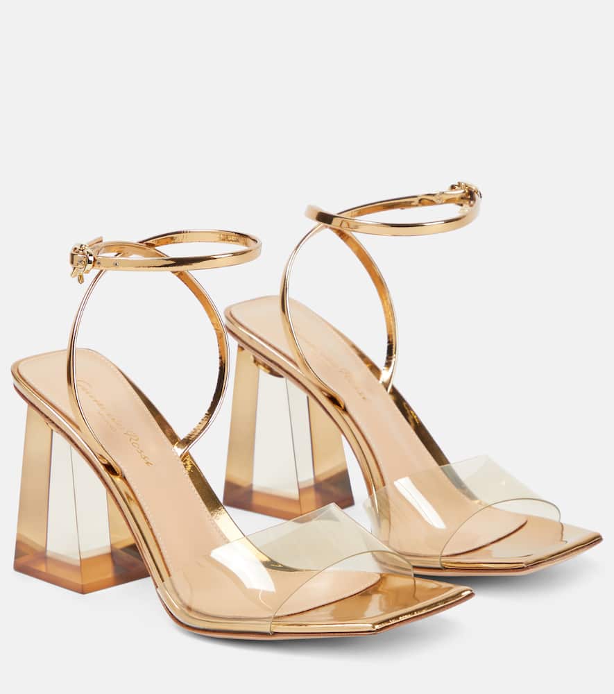 Upper: rubber. Lining: leather. Sole: leather insole and sole. Toe shape: square open toe. Made in Italy. Includes: shoe box, dust bag. Designer color name: Mekong+Mekong. Closure: buckle-fastening ankle strap. Shop the latest Gianvito Rossi High-Heel Sandals for women now.
