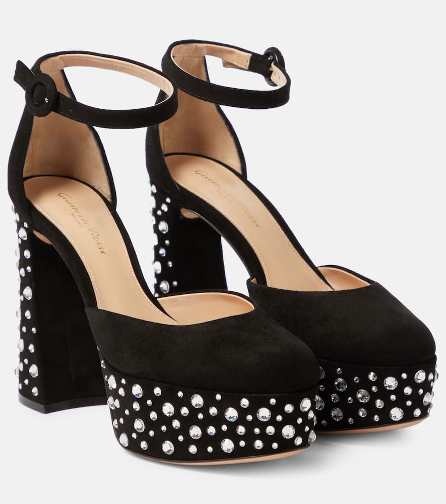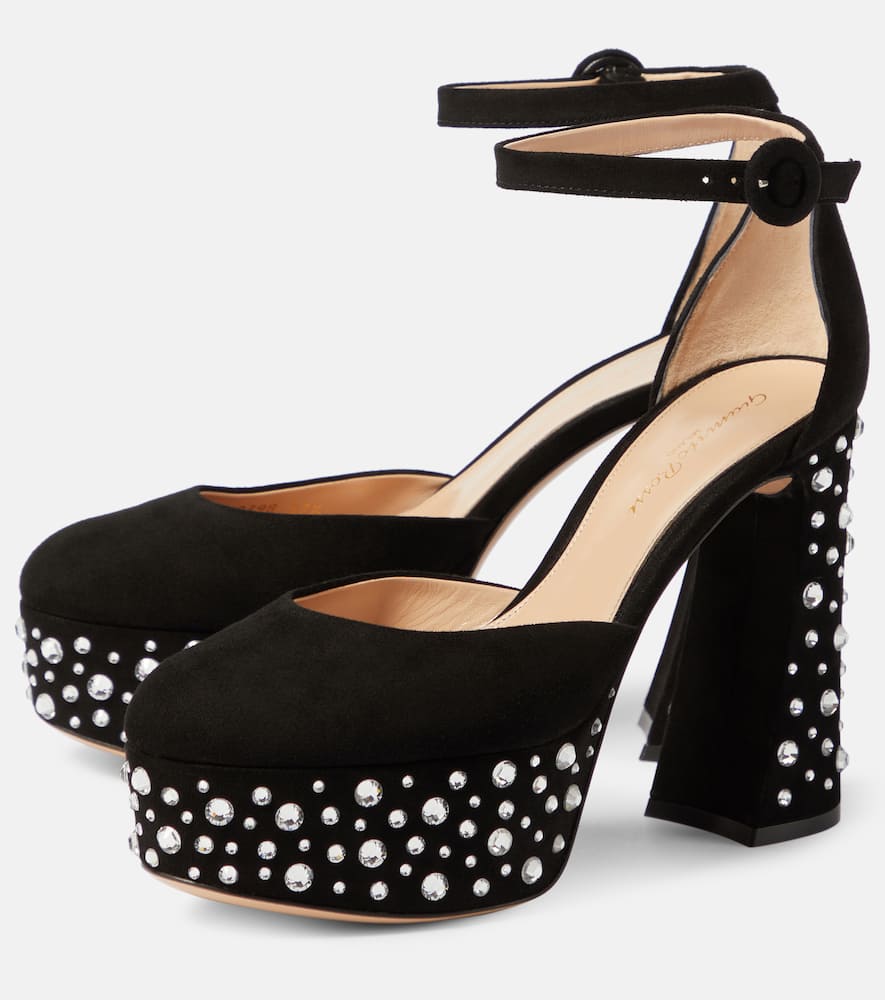 Gianvito Rossi Crystal Holly D'Orsay suede platform pumps
