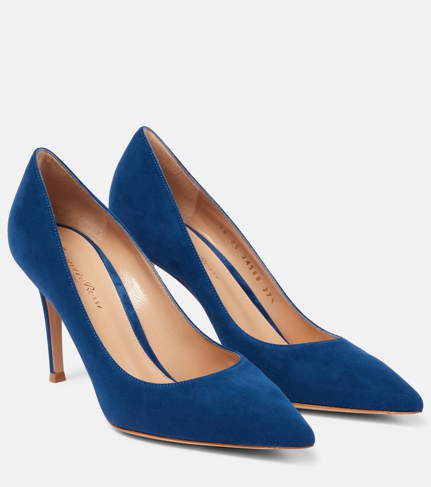 Lining: leather. Sole: leather insole and sole. Upper: goat leather. Toe shape: pointed toe. Comes with extra heel tips. Designer color name: Blue. Comes with a box. Made in Italy. Comes with dust bag. Shop the latest Gianvito Rossi Mid-Heel Pumps for women now.