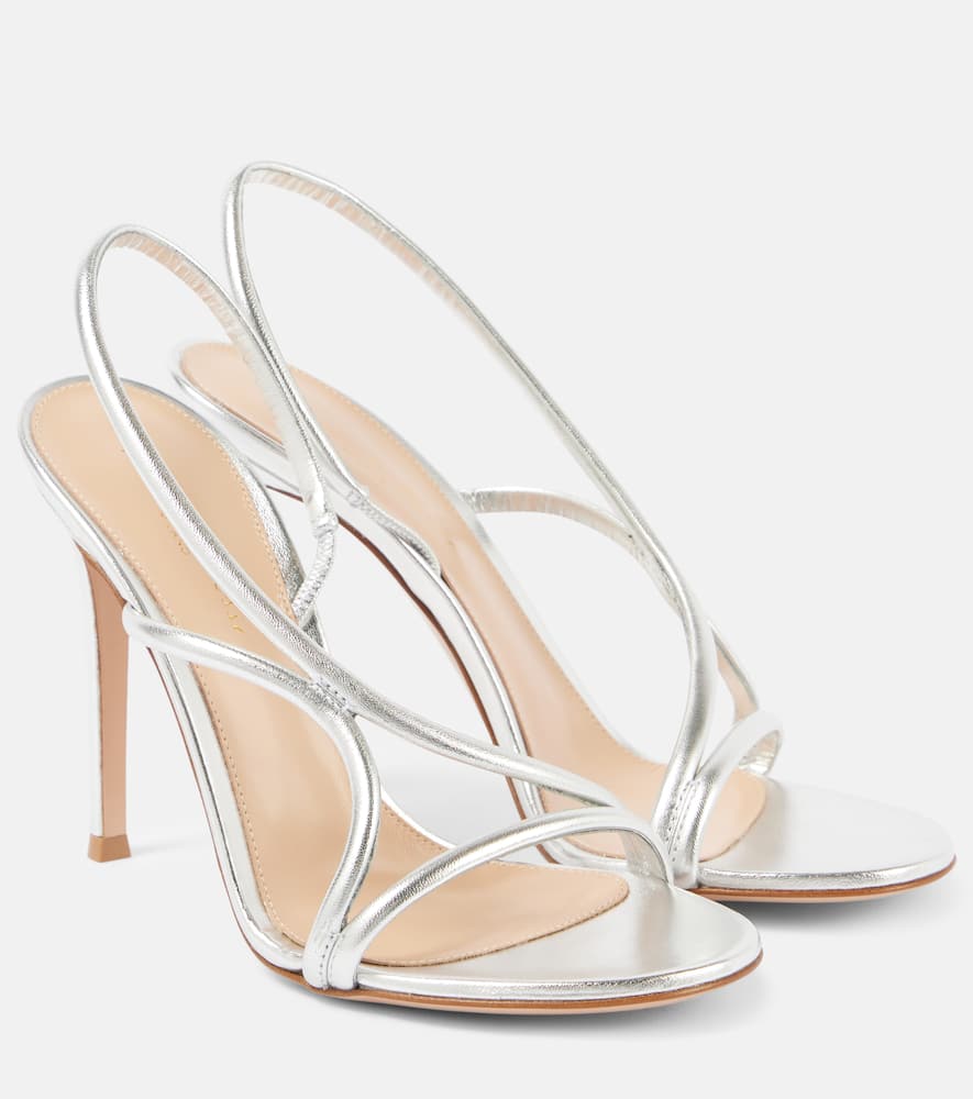 Upper: leather. Lining: leather. Sole: leather insole and sole. Toe shape: round open toe. Made in Italy. Includes: shoe box, dust bag. Designer color name: Silver. Closure: elasticated strap. Shop the latest Gianvito Rossi High-Heel Sandals for women now.