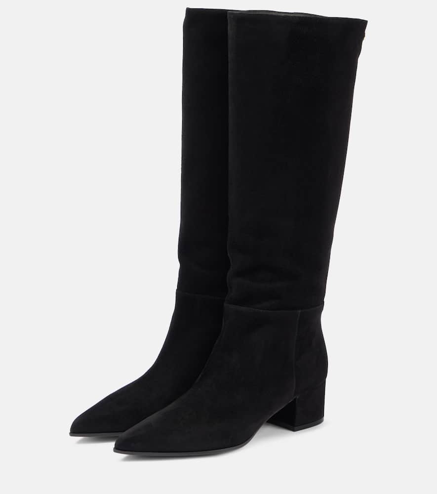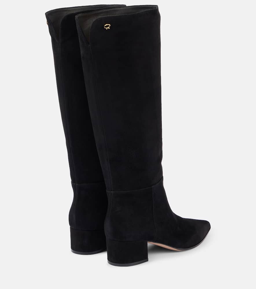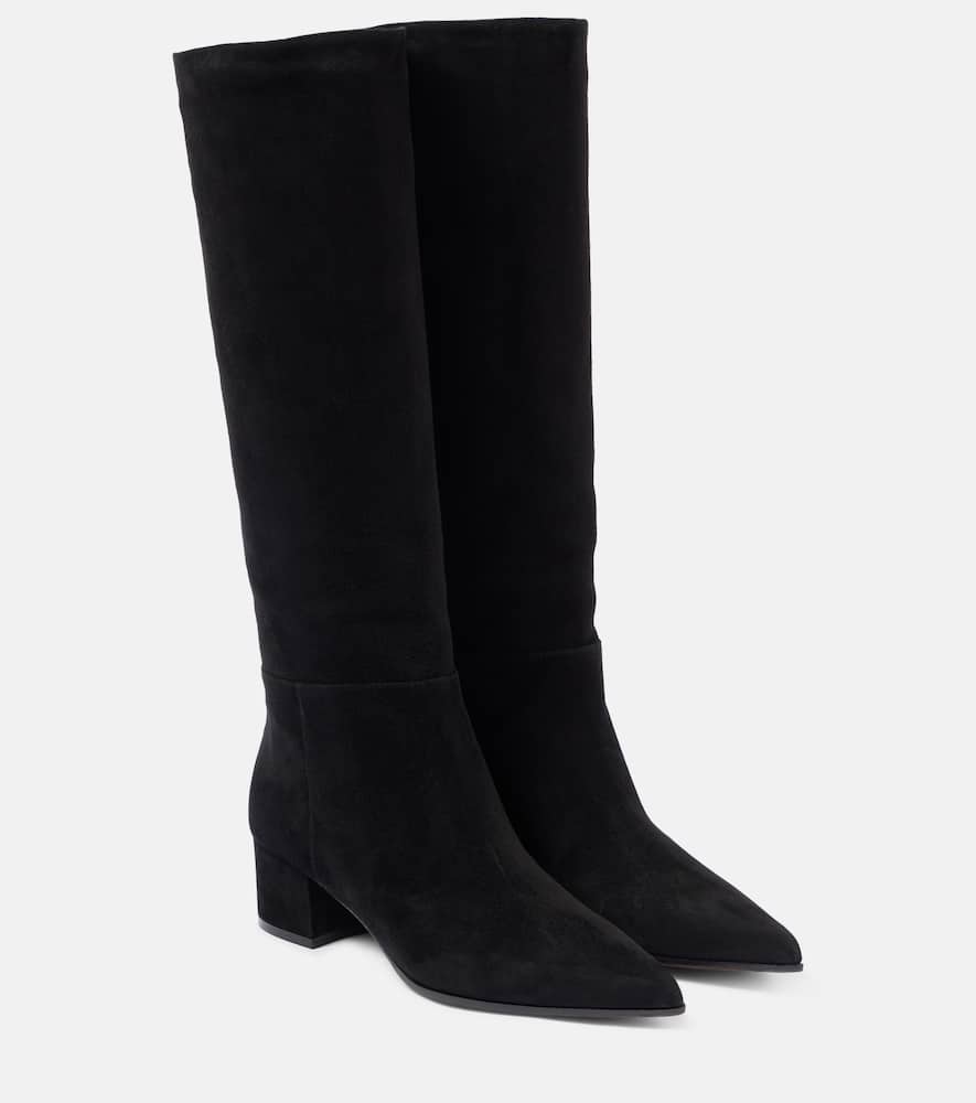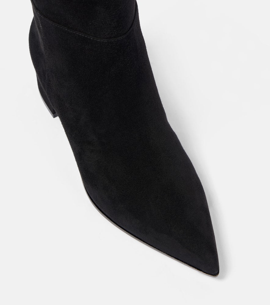 Upper: suede. Lining: leather. Sole: leather insole, rubber sole. Toe shape: pointed toe. Made in Italy. Includes: dust bag, shoe box. Designer color name: Black. Shop the latest Gianvito Rossi Mid-Heel Boots for women now.