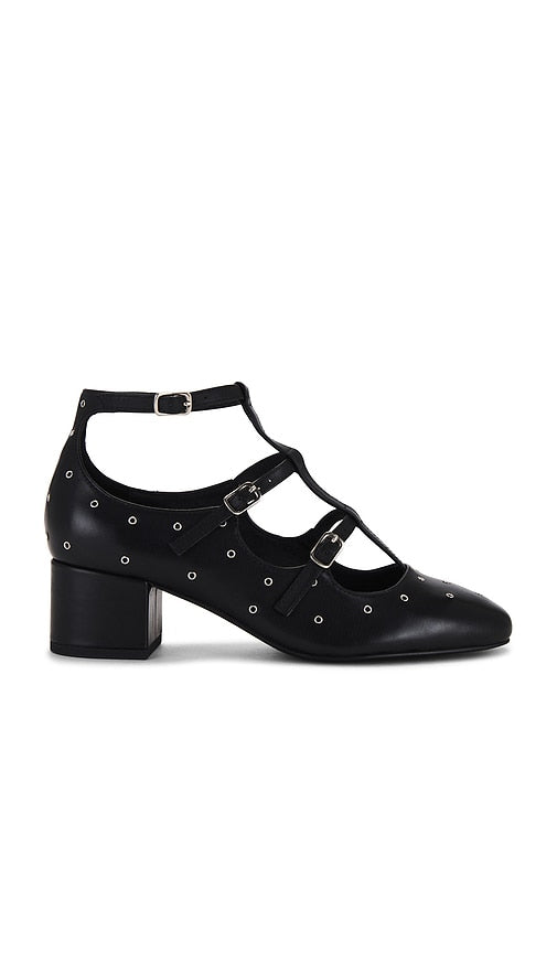 Leather upper with rubber sole. Imported. Three adjustable buckled straps. Leather footbed and lining. Silver-tone grommets throughout. Block heel. Approx 45mm/ 1.75 inch heel. IBLA-WZ145. ILD4-1401. Color: Black. Shop Black Mary Jane Flats for women and the latest INTENTIONALLY BLANK shoes now.