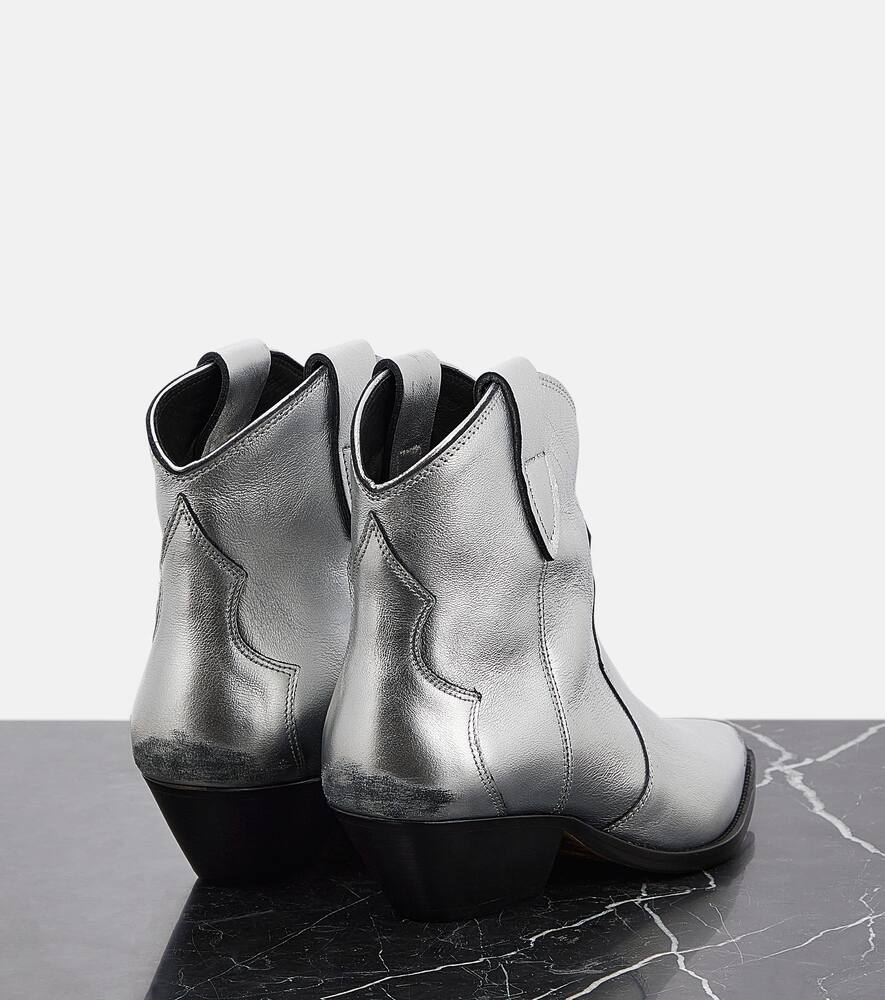Upper: cow leather. Lining: calf leather. Sole: leather insole and sole. Toe shape: pointed toe. Made in Portugal. Designer color name: Silver. Comes with a box. Comes with dust bags. Shop the latest Isabel Marant Mid Heels for women now.