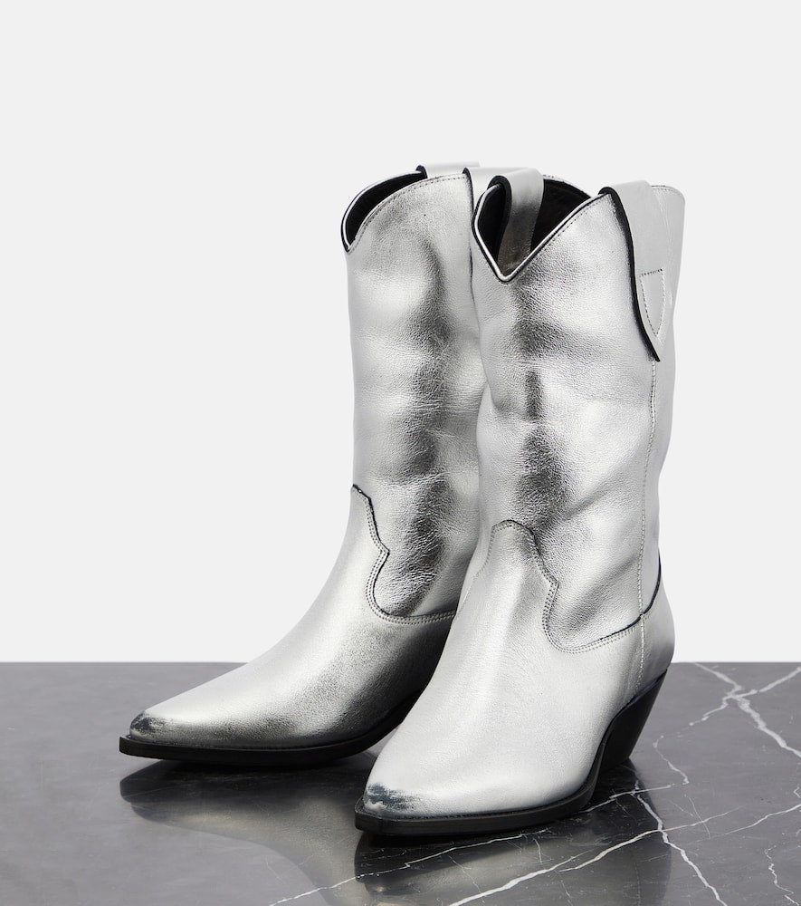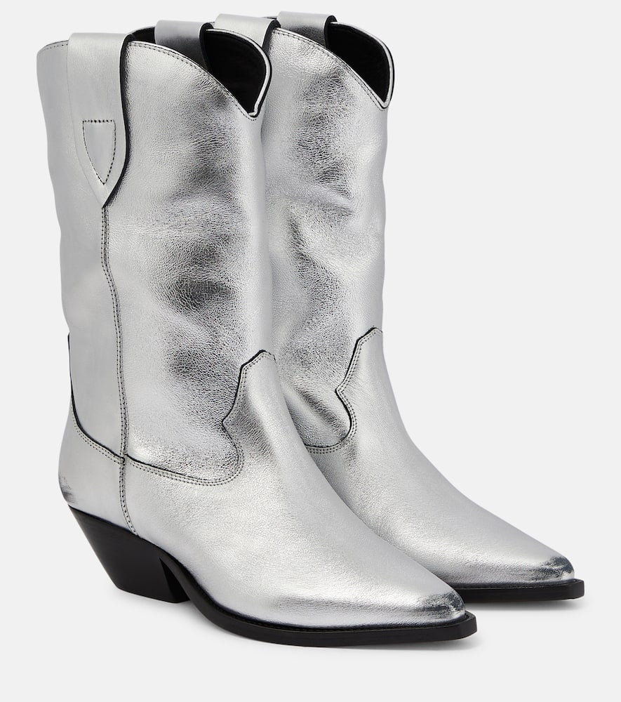 Upper: cow leather. Lining: calf leather. Sole: leather insole and sole. Toe shape: pointed toe. Made in Portugal. Designer color name: Silver. Comes with a box. Comes with dust bag. Shop the latest Isabel Marant Mid-Heel Boots for women now.