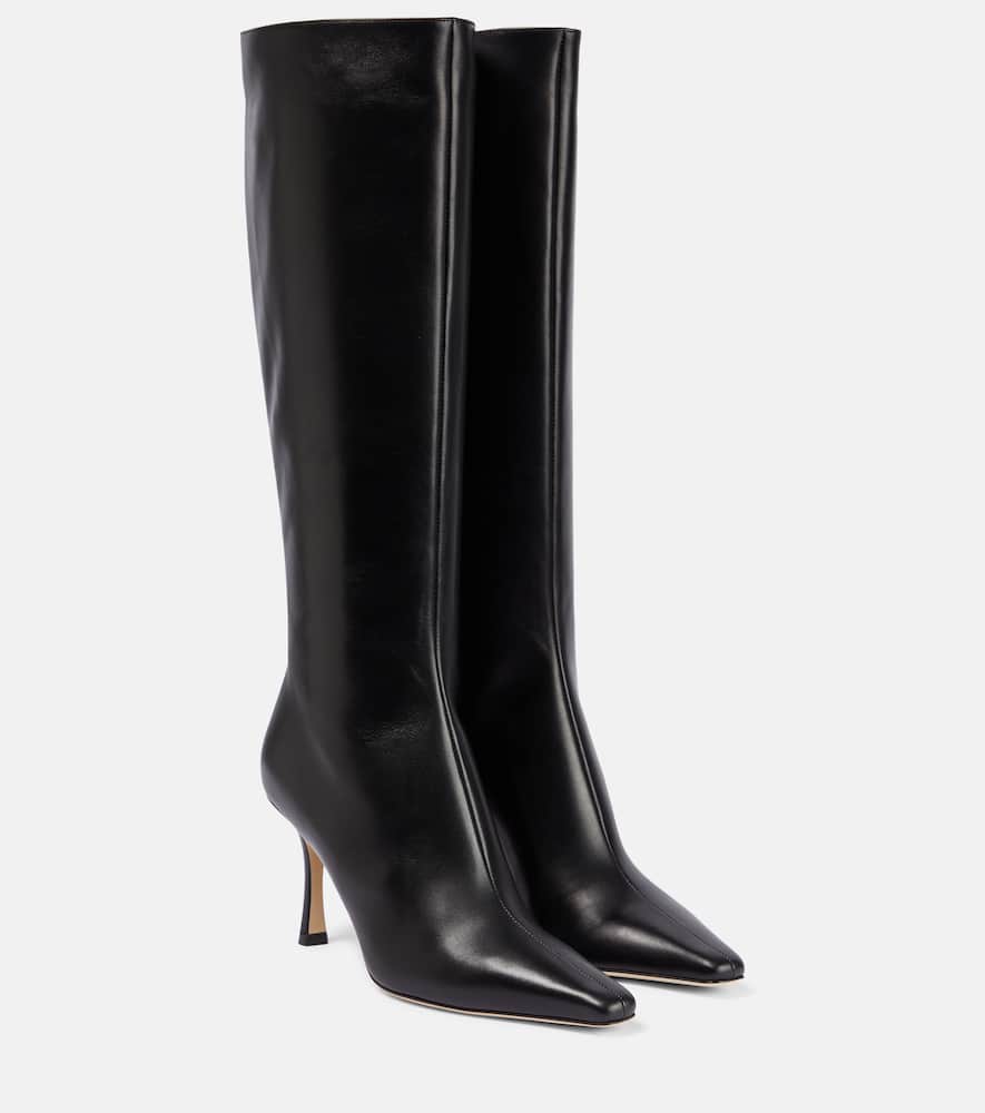 Upper: leather. Lining: leather. Sole: leather insole, leather and rubber sole. Toe shape: pointed toe. Made in Italy. Designer color name: Black. Closure: zipped back. Comes with a box. Comes with dust bags. Shop the latest Jimmy Choo Mid-Heel Boots for women now.