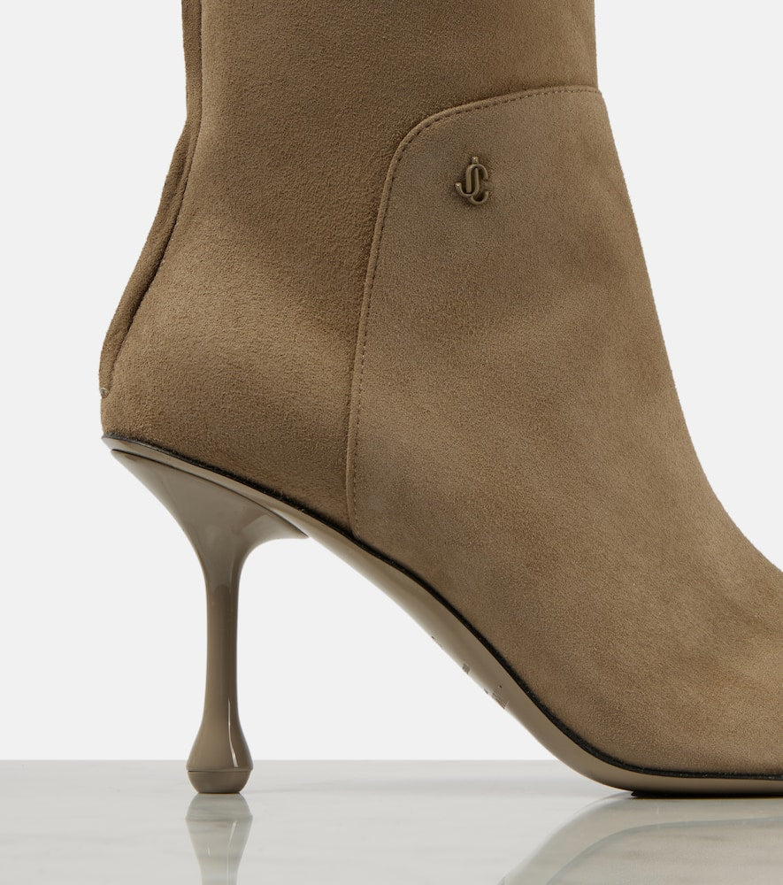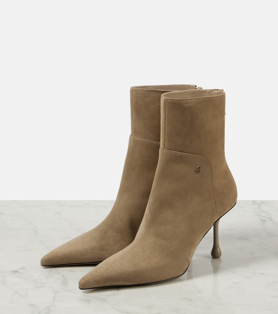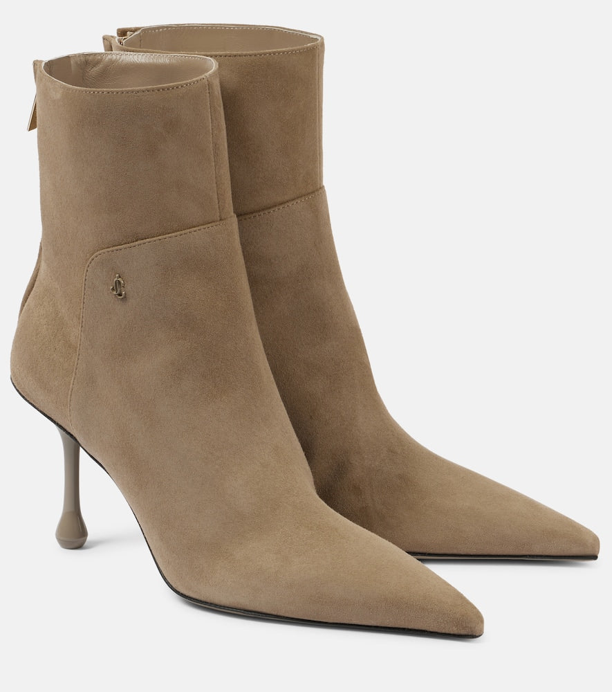 Upper: leather. Lining: leather. Sole: leather insole and sole. Toe shape: pointed toe. Made in Italy. Includes: dust bags, shoe box. Designer color name: Taupe. Closure: zipped back. Shop the latest Jimmy Choo Mid Heels for women now.