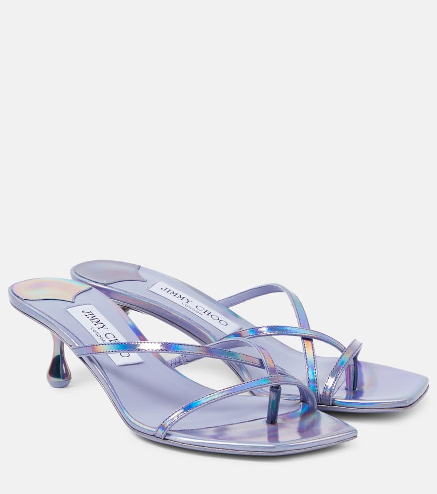 Upper: leather. Lining: leather. Sole: leather insole, rubber sole. Toe shape: square open toe. Made in Italy. Includes: shoe box, dust bags. Designer color name: Tanzanite. Shop the latest Jimmy Choo Mid-Heel Sandals for women now.