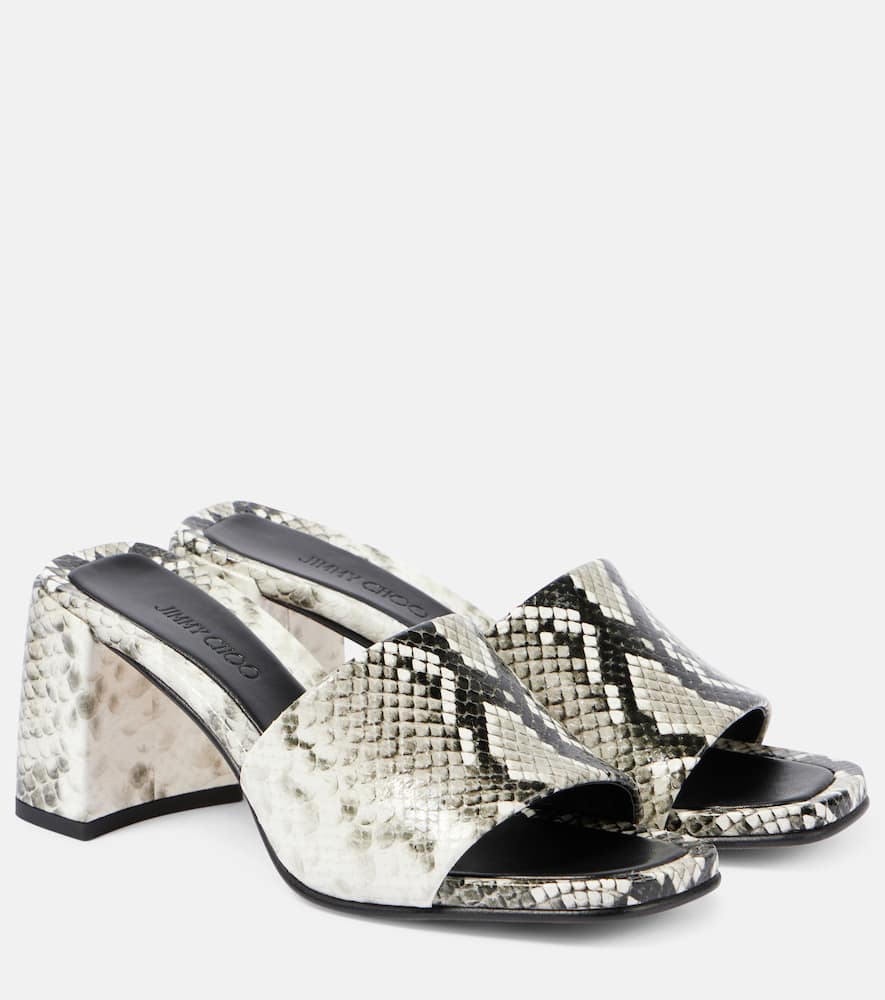 Upper: leather. Lining: leather. Sole: leather insole, rubber sole. Toe shape: square open toe. Made in Italy. Includes: shoe box, dust bags. Designer color name: Roccia. Shop the latest Jimmy Choo Mid-Heel Sandals for women now.