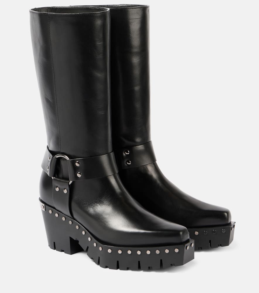 Upper: leather. Lining: leather. Sole: leather insole, rubber sole. Toe shape: pointed toe. Made in Italy. Includes: shoe box, dust bags. Designer color name: Black. Hardware color: silver. Shop the latest Jimmy Choo Mid-Heel Boots for women now.
