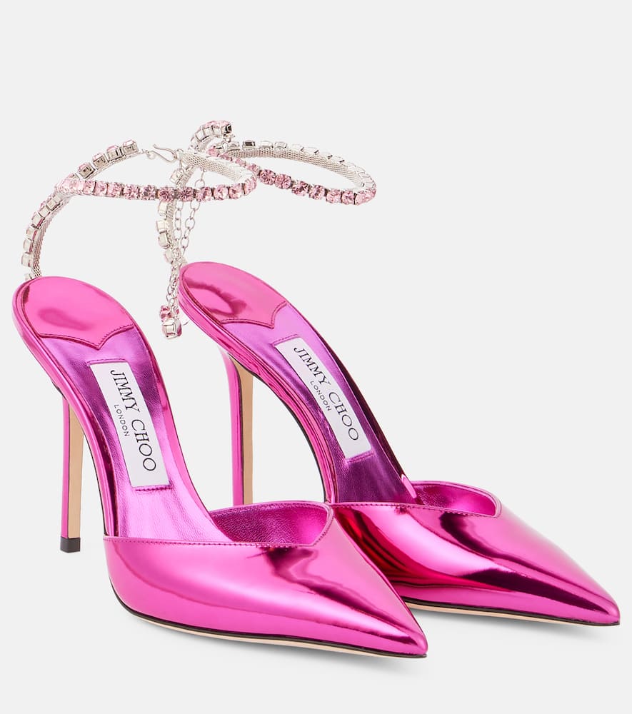 Upper: leather. Lining: leather. Sole: leather insole and sole. Toe shape: pointed toe. Made in Italy. Includes: dust bags, shoe box. Designer color name: Fuchsia/Light Rose. Closure: hook fastening. Shop the latest Jimmy Choo High-Heel Pumps for women now.