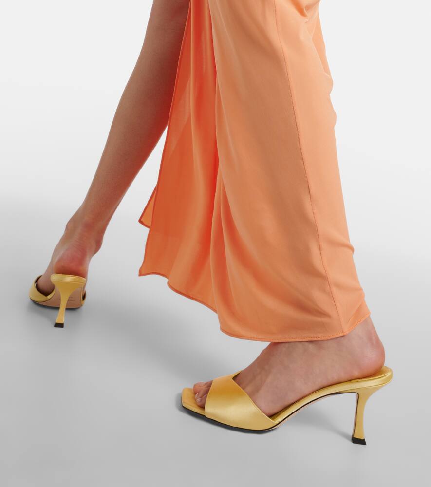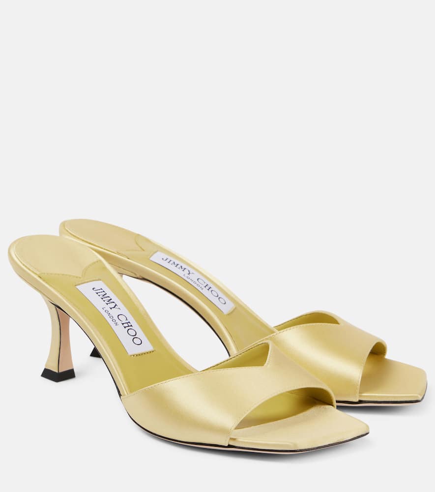 Upper: fabric. Lining: leather, fabric. Sole: leather insole and sole. Toe shape: square open toe. Made in Italy. Includes: shoe box, dust bags. Designer color name: Sunbleached Yellow. Shop the latest Jimmy Choo High-Heel Sandals for women now.