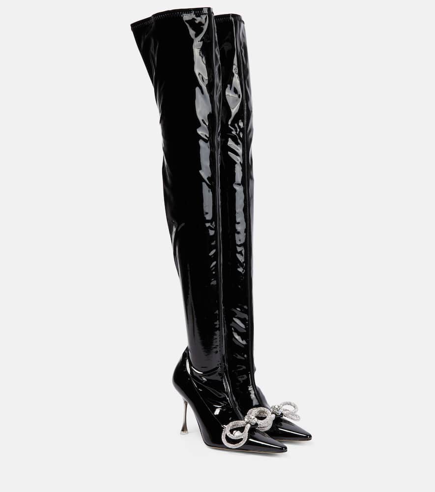 Lining: leather. Closure: zipped side. Sole: leather insole and sole. Toe shape: pointed toe. Upper: leather. Designer color name: Black. Comes with a box. Made in Italy. Comes with dust bag. Shop the latest Mach & Mach High-Heel Boots for women now.