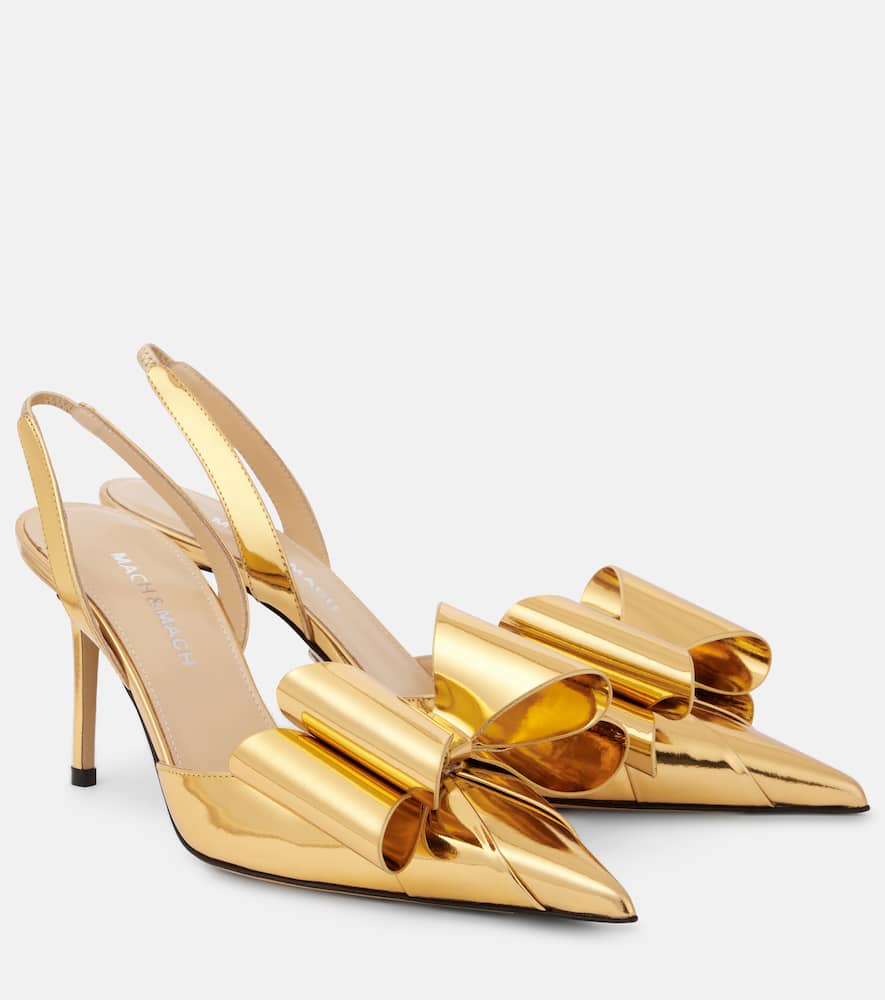 Upper: leather. Lining: leather. Sole: leather insole and sole. Toe shape: pointed toe. Made in Italy. Includes: shoe box, dust bags, extra heel tips. Designer color name: Gold. Closure: elasticated strap. Shop the latest Mach & Mach High-Heel Pumps for women now.