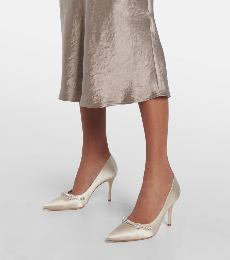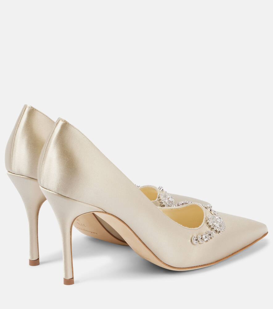 Upper: fabric. Lining: leather. Sole: leather insole and sole. Toe shape: pointed toe. Made in Italy. Includes: shoe box. Designer color name: 1127 Dcrm. Shop the latest Manolo Blahnik High-Heel Pumps for women now.