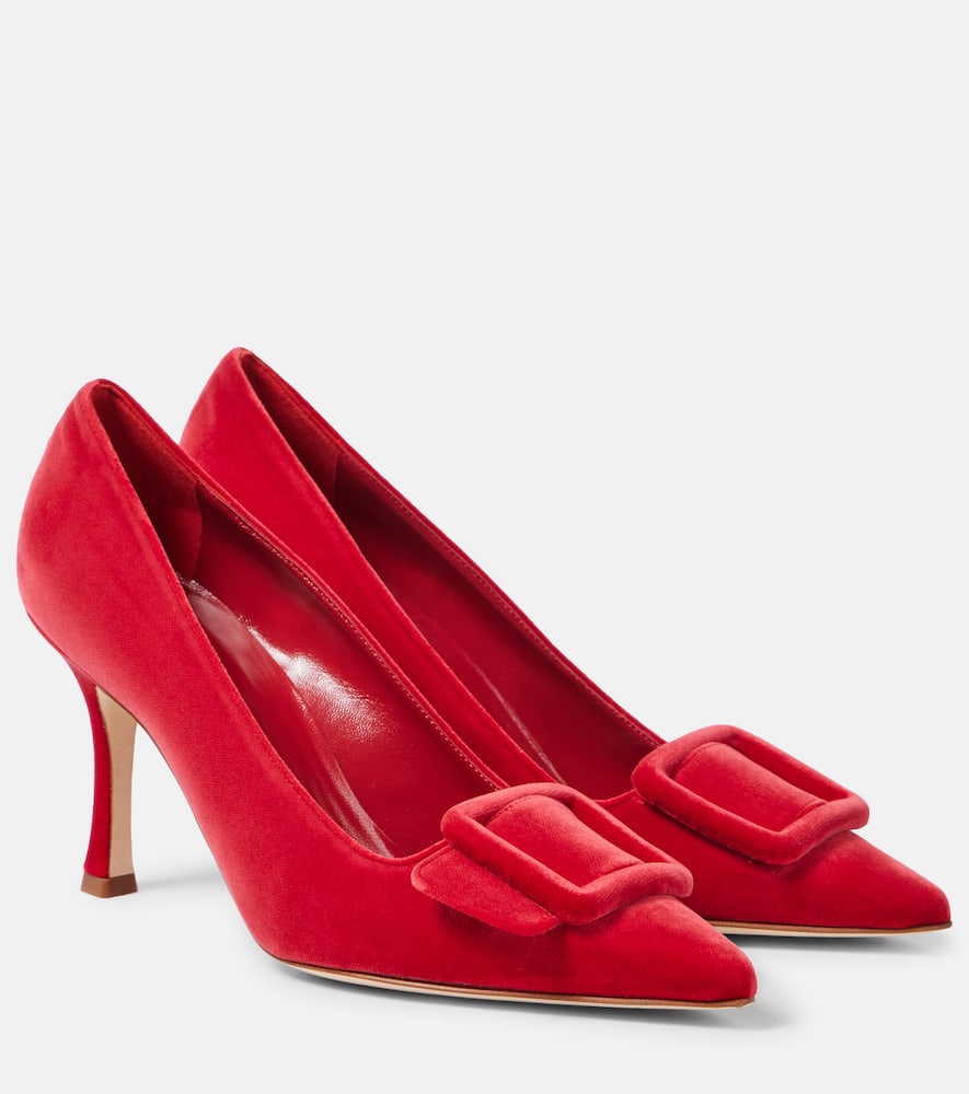 Upper: velvet. Lining: leather. Sole: leather insole and sole. Toe shape: pointed toe. Made in Italy. Includes: shoe box. Designer color name: 6208 Bred. Shop the latest Manolo Blahnik High-Heel Pumps for women now.